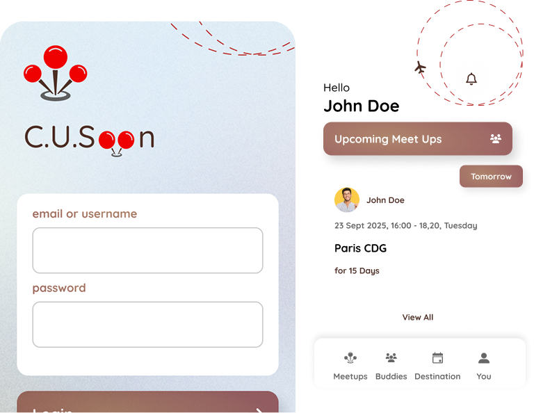 CU Soon is your smart companion for staying connected with friends, family, and colleagues. Whether you’re traveling, on a layover, or simply exploring a new city, See you soon tells you ahead of time who will be nearby so you can plan meetups and make the most of every opportunity.